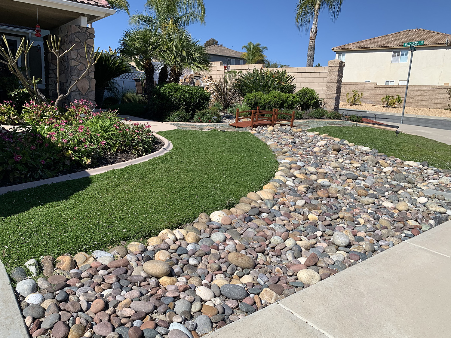 Dry creek beds also pair perfectly with stone pathways and garden beds, giving your outdoor space a classic look while helping water flow properly through your yard. This approach works especially well in the Temecula climate, where drainage and sustainable landscaping materials matter.