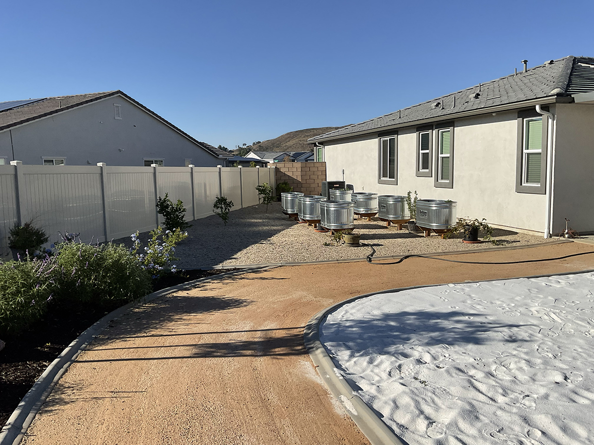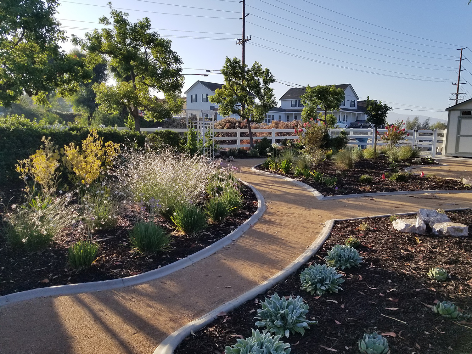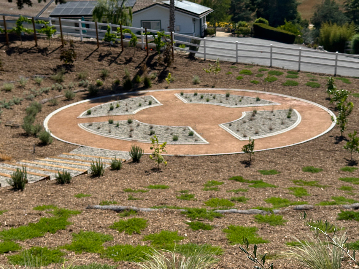 Decomposed Granite – also known as DG – is a versatile landscape material. Its relatively low cost makes it an excellent material for walking paths, bike tracks, and secondary sitting areas. Its neutral color makes it an excellent fit for Mediterranean, Farmhouse, Wine Country, Desert and other landscape styles.