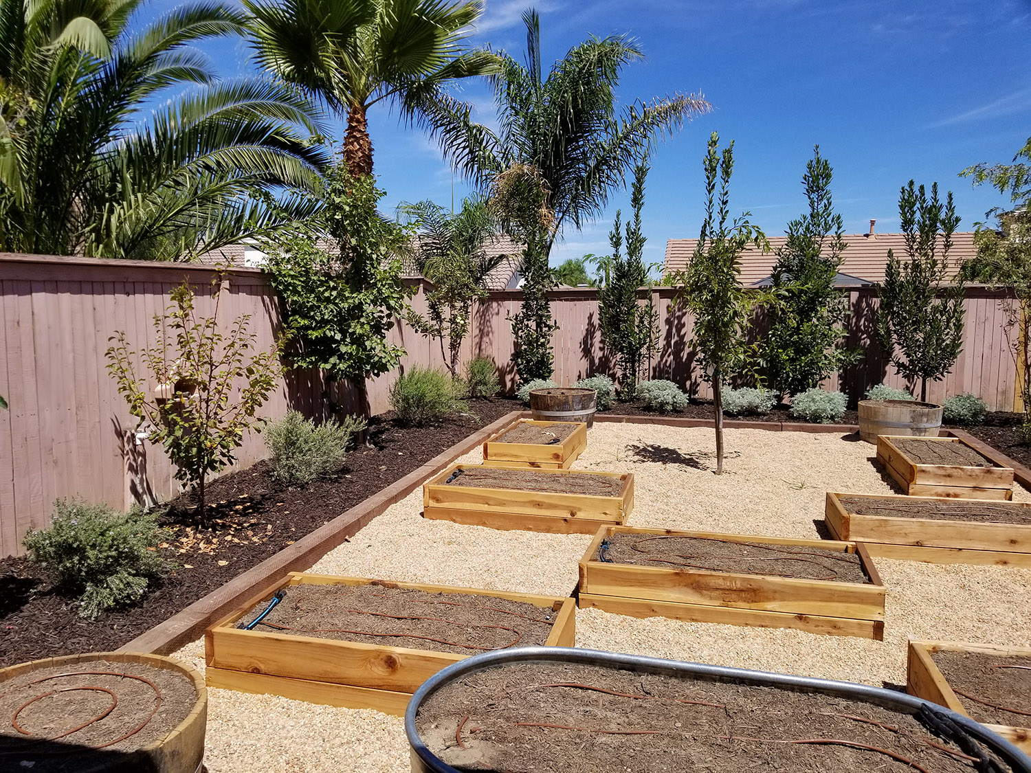 Edible gardens can be an incredibly practical way to use a landscape space. Fruit trees, berry bushes, grape vines, and a variety of herbs grow very successfully in Southern California. Whether raised or in-ground, edible gardens can be fun for the whole family. Raised gardens can be wooden boxes, metal troughs, and even whisky barrels.