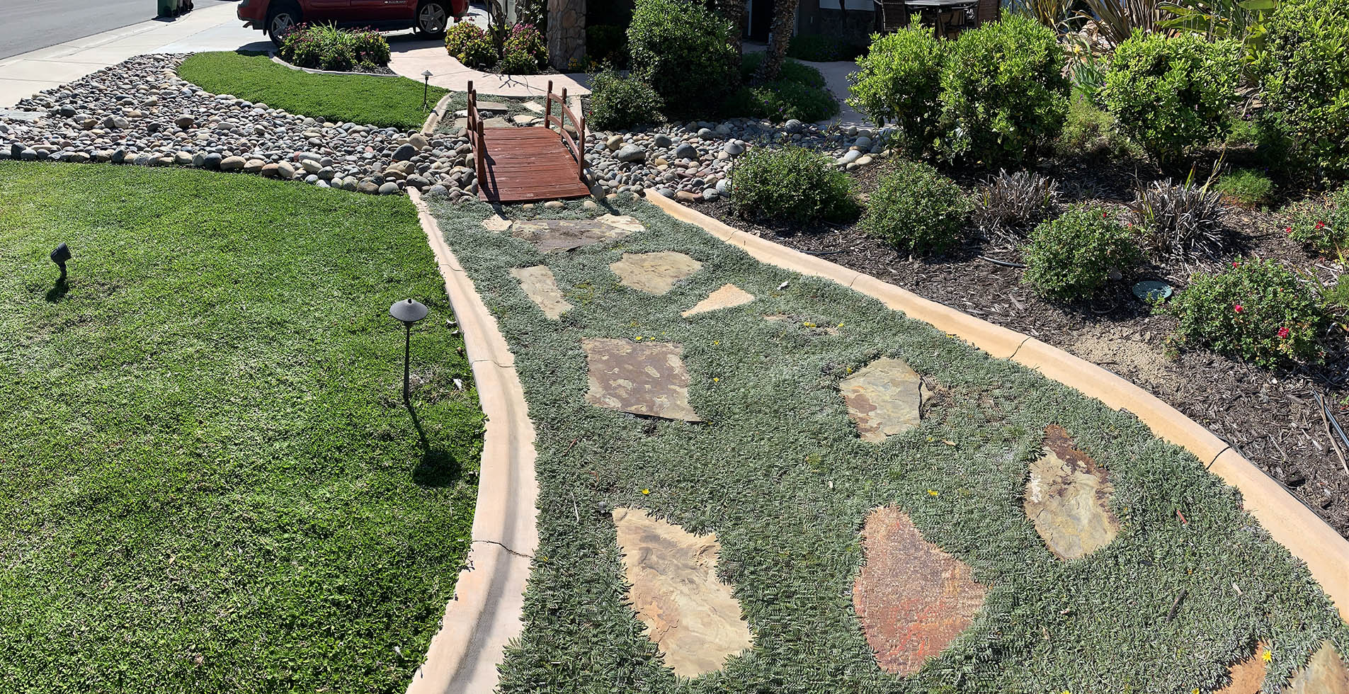 Natural grass is not the right choice for every home or every family. Luckily, there are a number of alternatives for California homeowners to choose from. Included below is a representative sample of select kinds and applications of grass alternatives, but please see our other pages to find many other options as well. Dry river stream beds, gravel or stonework, low-water colorful plantings, and artificial turf are just some of your other options!