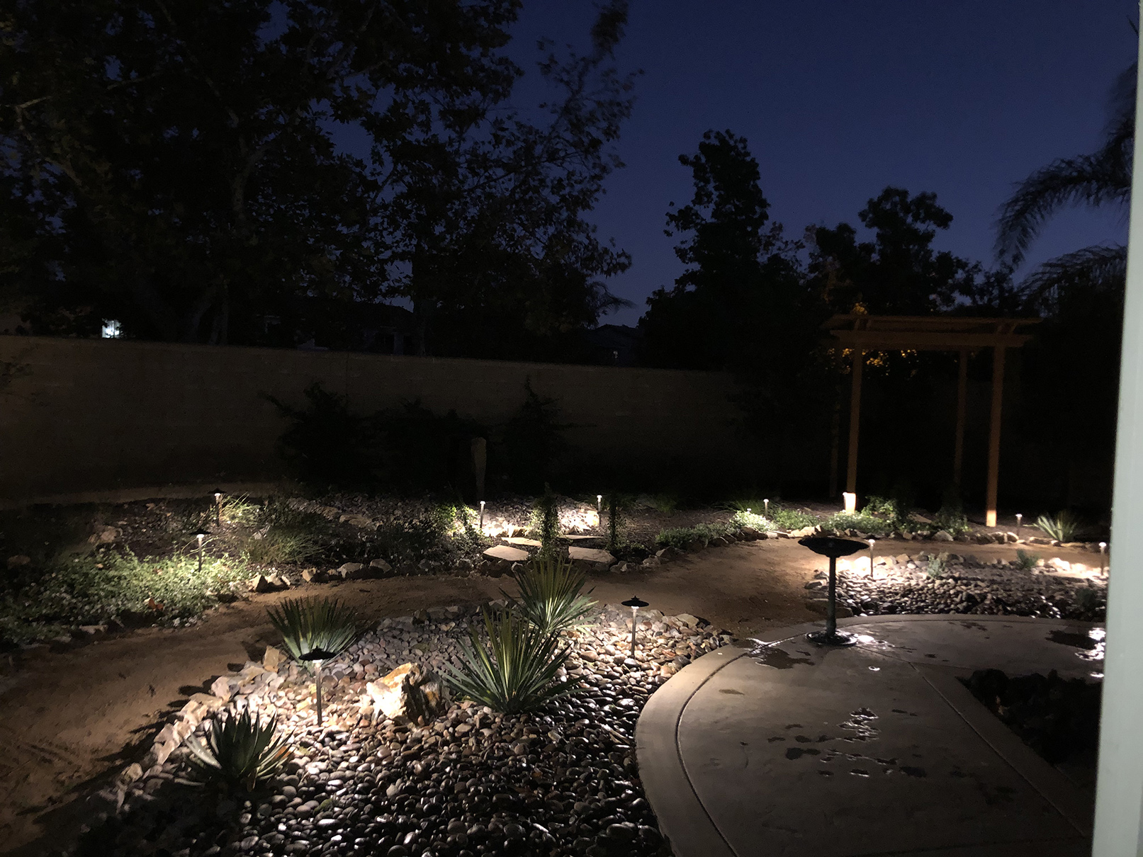 Low voltage lighting can make your landscape a cut above the rest. Our professional grade, low maintenance, LED lighting can brighten up any dark space for years to come. From path lights, to dramatic up-lights, wall lights, barbecue lights, and beautiful pilaster lanterns, we have a fixture for every need.