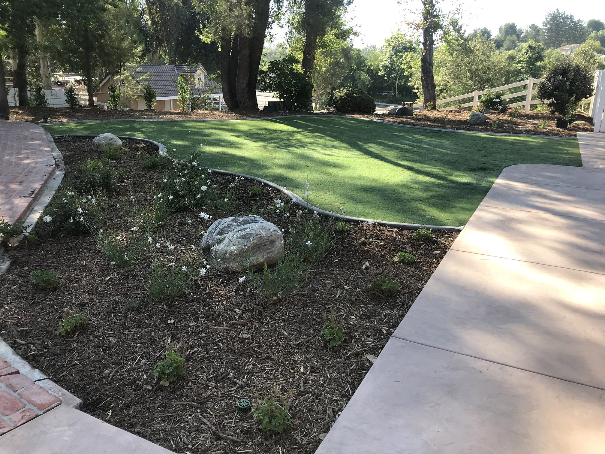 Sod is still one of the fastest ways to add green to a landscape. At McCabe’s Landscape, we offer an all-season grass called Fescue. To save on water, we can install an underground drip irrigation system. Adding a concrete border (mow curb) is a great way to keep a clean, green look without worrying about the grass spreading into planted spaces (or neighbors’ yards).