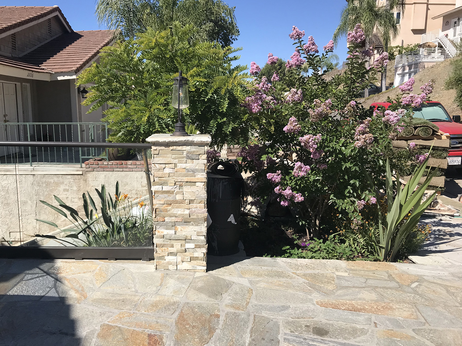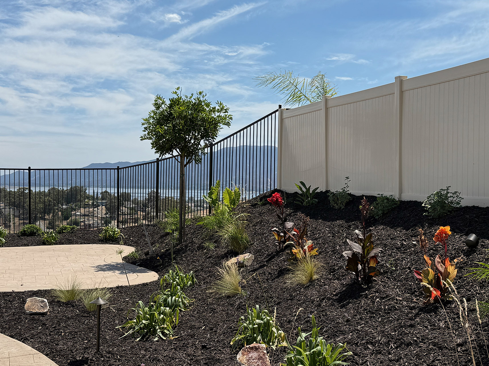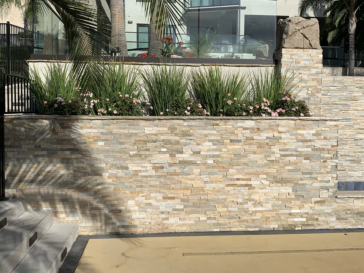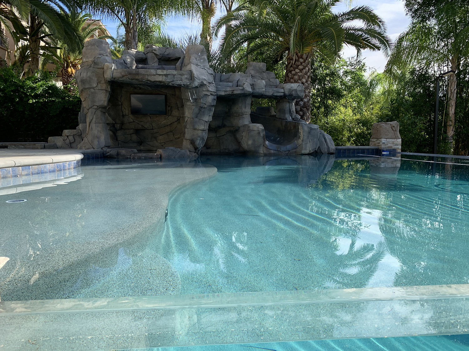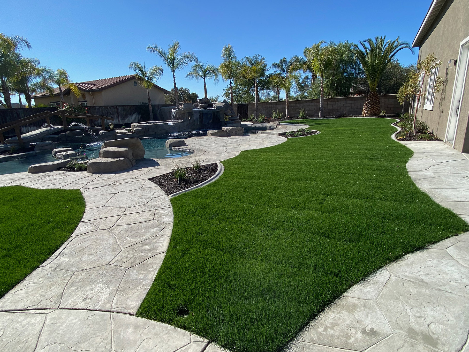 Whether lush and leafy or colorful and bright, tropical landscapes can take transport you to another place without having to leave your own back yard. Shot of pavers paths and live grass areas. Shot of bamboo fencing. Shot of frilly orange flowers. Shot of waterfall/ water slide in pool structure. Shot of stone finished wall curbing. Shot of curbed turf lawn. Shot of pool with water slide, waterfall, infinity edge and shallow step. Shot of concrete pool border. Shot of glass railings on stone finished balcony. Shot of half court and palm trees. Shot of mulch plantings curbed by boulders and glassed in lake house. Shot of basketball court, putting green, artificial turf lawn, flagstone paver path and stairs, glassed in lake/boat house. Shot of pool and spa, fireplace, tropical plantings, stonework Shot of large flowering purple and pink plant blocking the staircase path into the backyard. Shot of dark wooden latticed patio cover. Shot of tan concrete pool and hot tub. Shot of Outdoor kitchen with stone facing in Temecula McCabe’s Landscape Construction Shot of covered pool. Shot of covered flagstone pool and hot tub.