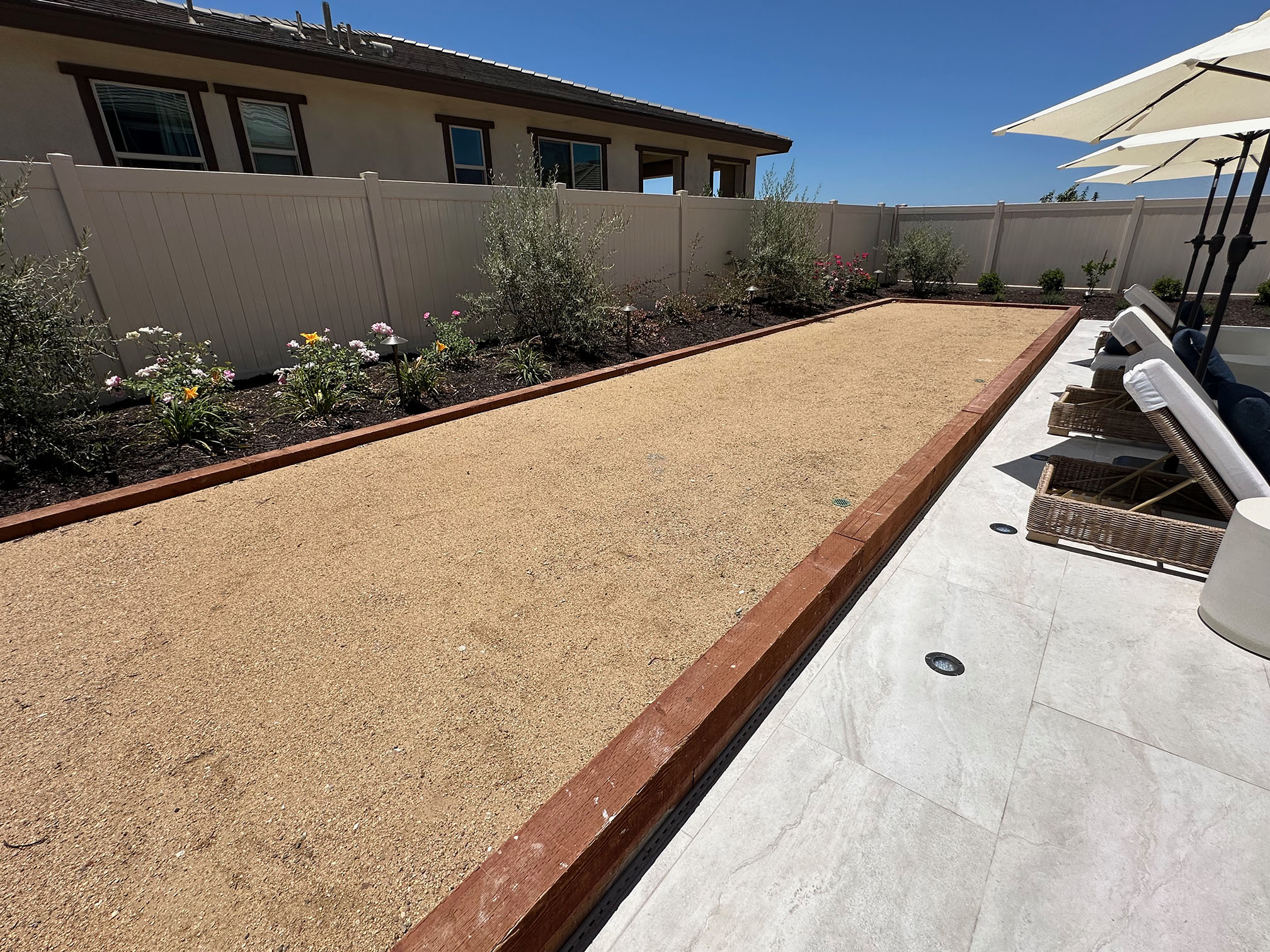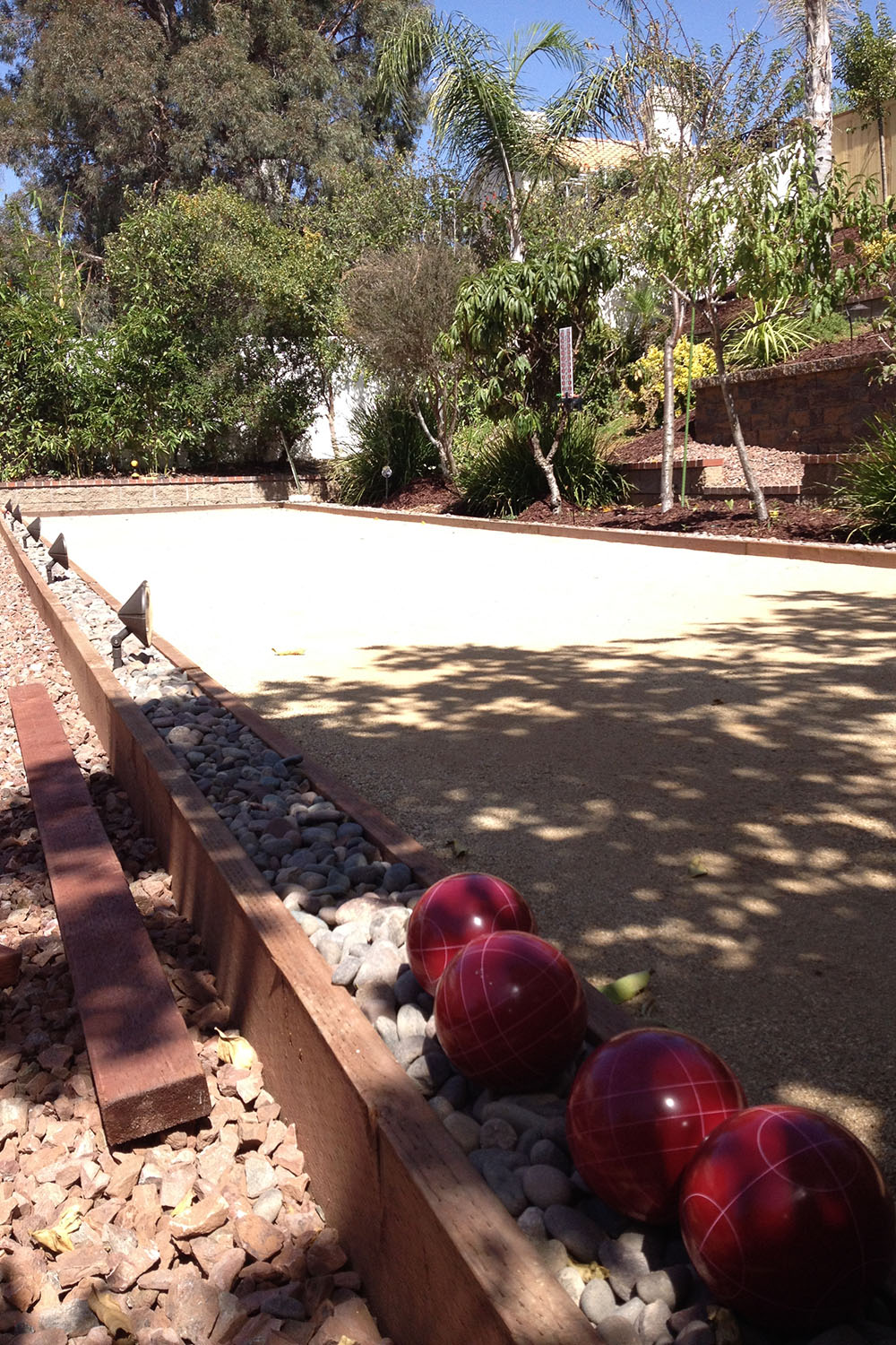 Shot of bocce ball court.