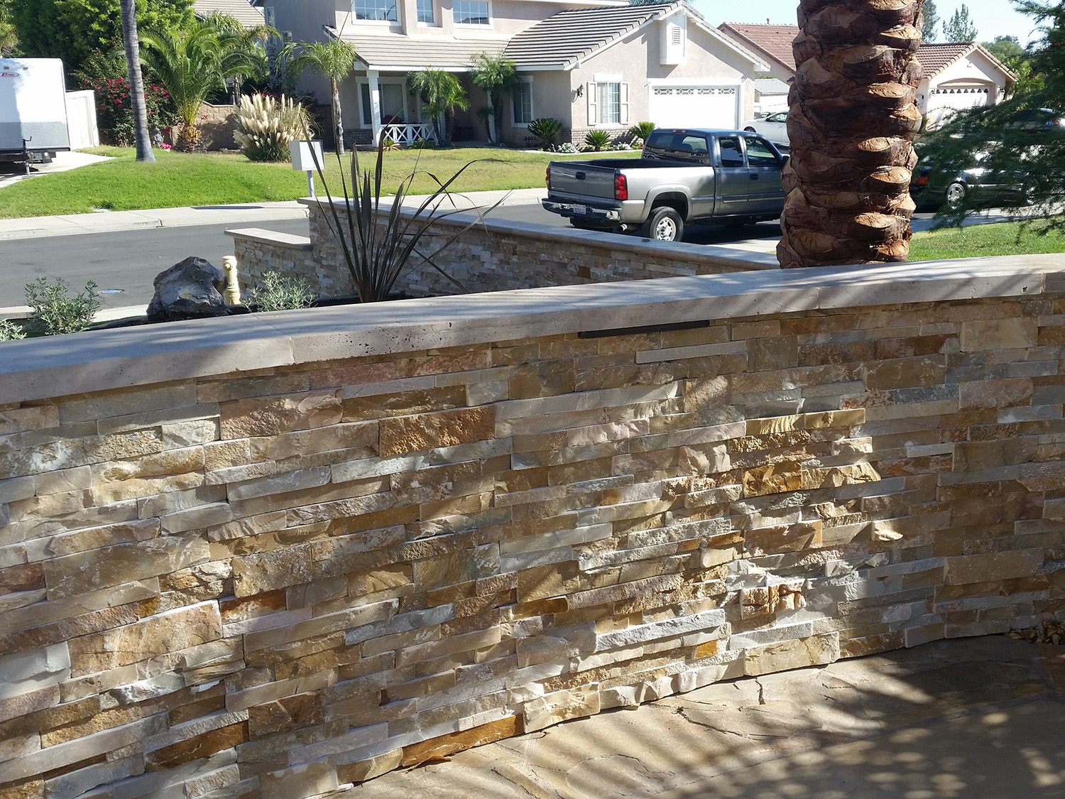 Shot of Flagstone courtyard with walls in Murrieta McCabe’s Landscape Construction